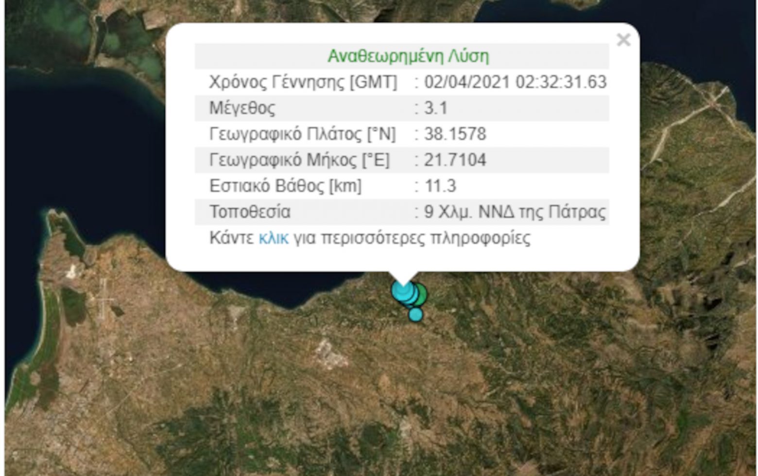 Το επίκεντρο αυτής της δόνησης είναι 9 χιλιόμετρα νότια – νοτιοδυτικά της Πάτρας.