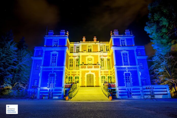 Στα χρώματα της Ουκρανίας φωτίστηκε η έδρα της Περιφέρειας Κεντρικής Μακεδονίας, η Βίλα Αλλατίνη, όπως αναφέρει σε ανάρτησή του στα μέσα κοινωνικής δικτύωσης ο περιφερειάρχης Απόστολος Τζιτζικώστας.