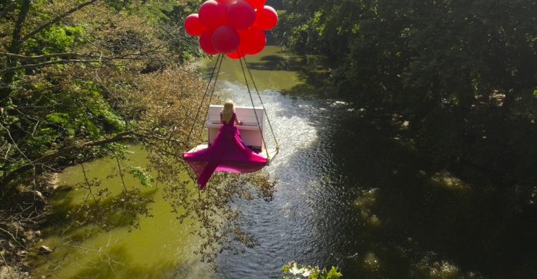Ένα πιάνο να αιωρείται ανάμεσα στην Κοιλάδα των Τεμπών κρεμασμένο από τεράστια μπαλόνια δημιουργώντας μια εξωπραγματική ατμόσφαιρα για τα ελληνικά δεδομένα.