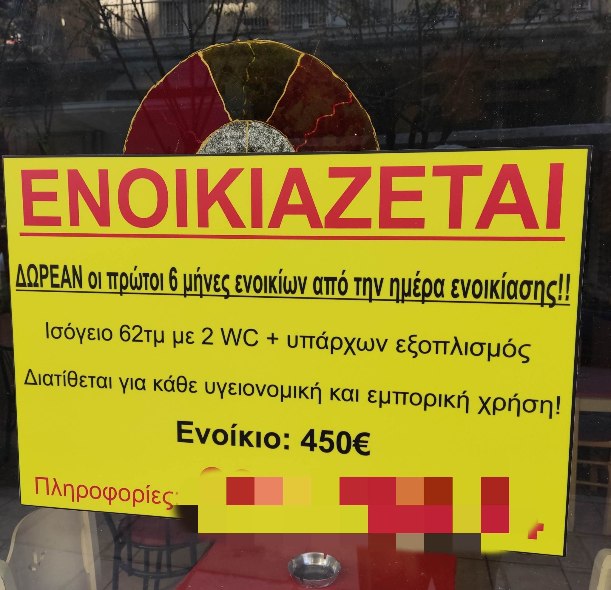 Με δωρεάν τους πρώτους 6 μήνες ενοικιάζεται κατάστημα στο κέντρο της Θεσσαλονίκης, όπως αναγράφεται σε ταμπέλα στην πρόσοψη του ακινήτου!