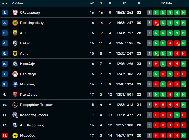 ΑΕΚ και ΠΑΟΚ συνέχισαν χέρι-χέρι, επικρατώντας του Αμαρουσίου και του Κολοσσού Ρόδου αντίστοιχα. Η Ένωση ανέβηκε στο 12-4, ενώ ο «δικέφαλος του βορρά» ακολουθεί στο 11-4 με ένα παιχνίδι λιγότερο, την ώρα που την επόμενη αγωνιστική οι δύο ομάδες θα τεθούν αντιμέτωπες στο Παλατάκι σε ματς που μπορεί να αποδειχθεί καθοριστικό για την 3η θέση.