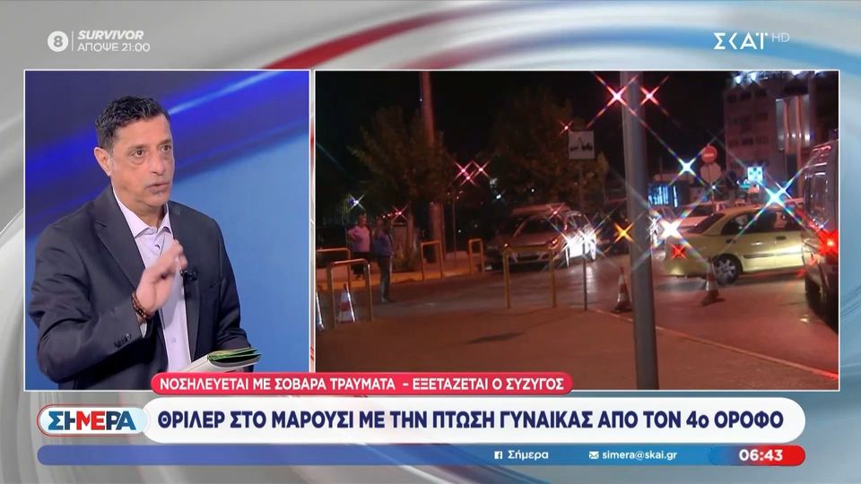 Στο νοσοκομείο, τραυματισμένη, είναι μία 27χρονη γυναίκα μετά από διπλή πτώση από μπαλκόνι διαμερίσματος πολυκατοικίας στο Μαρούσι.