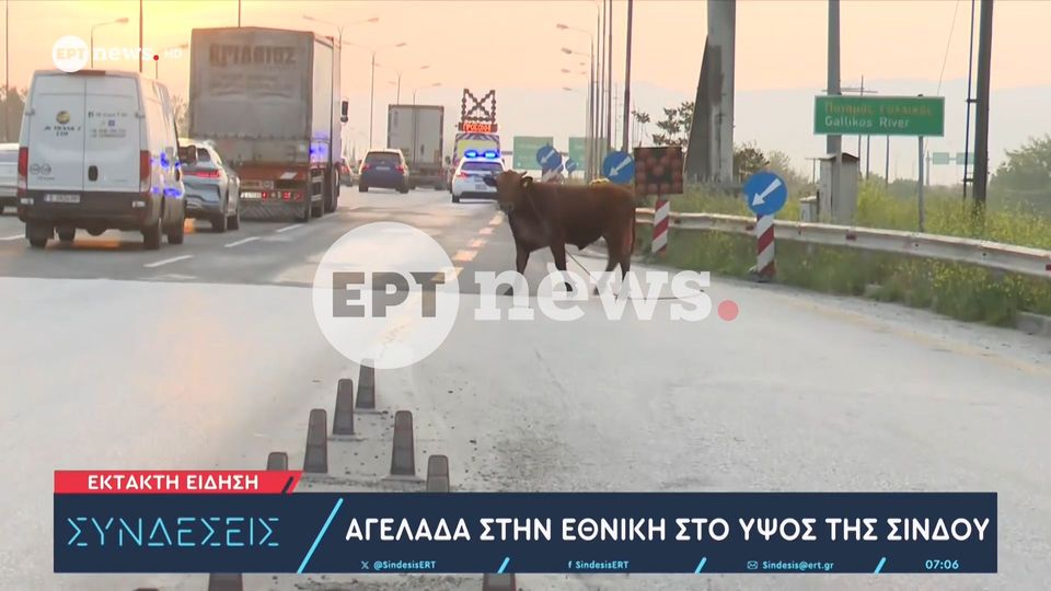 Μια αγελάδα βγήκε στην Εθνική Οδό Θεσσαλονίκης-Αθήνας στο ύψος της Σίνδου με αποτέλεσμα να προκληθεί κυκλοφοριακό κομφούζιο!
